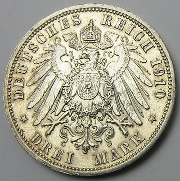 Preussen, Wilhelm II, 3 mark 1910A - KM 527
