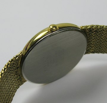Citizen CQ damearmbåndsur i kasse af metal med to tonet, champagnefarvet skive med sort kant, stregindikationer, central sekundviser. Urkasse Diam. ca. 30,5 mm. Guldfarvet metallænke.