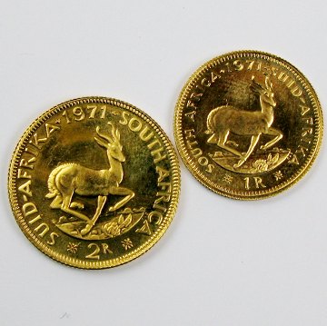 Sydafrika, komplet møntsæt 1971, 2 og 1 Rand GULD - KM PS 81
