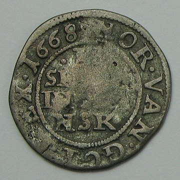 Norge, Frederik III, 2 skilling 1668 - H. 70E