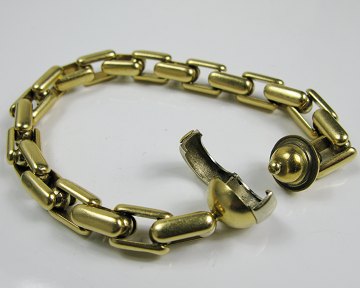 Baraka, italiensk design armlænke af 18 kt. guld med kædeformede led og kugleformet sikkerhedslukke. L. ca. 20,5 cm.