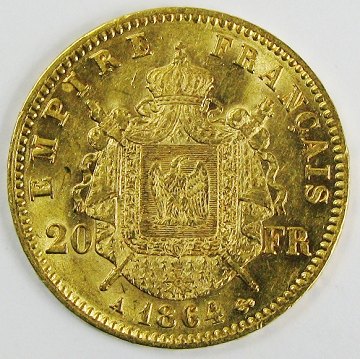 Frankrig, Napoleon III, 20 francs GULD 1864A - KM 801.1