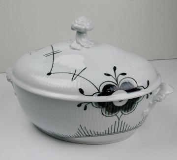 Royal Copenhagen, oval sort Mega Mussel terrin, dess. 182 med låg dess. 183. L. ca. 30 cm.