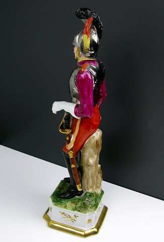 Capodimonte figur, officer fra det 18. århundrede af håndbemalet fajance. H. ca. 33 cm. Capodimonte, Italien 20. årh.