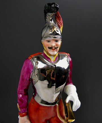 Capodimonte figur, officer fra det 18. århundrede af håndbemalet fajance. H. ca. 33 cm. Capodimonte, Italien 20. årh.