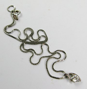 Vedhæng af 18 kt. HVIDGULD med "fine cut" brillant 0,38 ct. Top Wesselton - vs2. Kæde ligeledes 18 kt. hvidguld, L. ca. 42 cm.