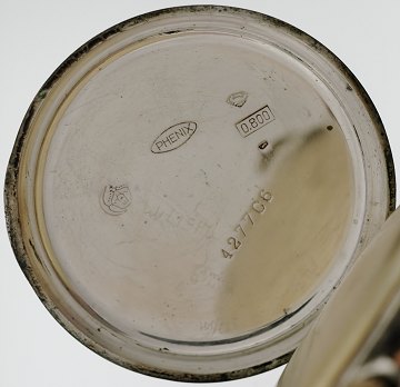 Herrelommeur af mærket Phenix, i kasse af sølv, hvid skive m. dobbeltradet arabertal, seperat sekundviser, manuelt optræk. Ø. 49 mm.