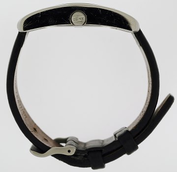 Damearmbåndsur fra DKNY(Donna Karen New York) i kasse af stål, sort skive m. arabertal og stregindeks, seperat sekundviser, mineralglas, monteret m. original sort læderrem og stålspænde, quartz urværk. Ø. 26x34 mm.
