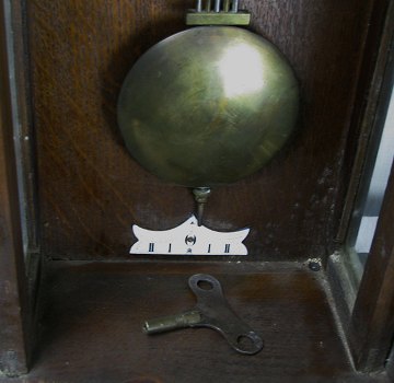 Antik Junghans regulator i kasse af mørkbeidset træ