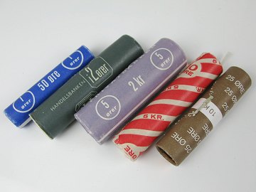 Danmark, møntsæt og møntruller 1-, 2-, 5-, 10-, 25 øre m.v.