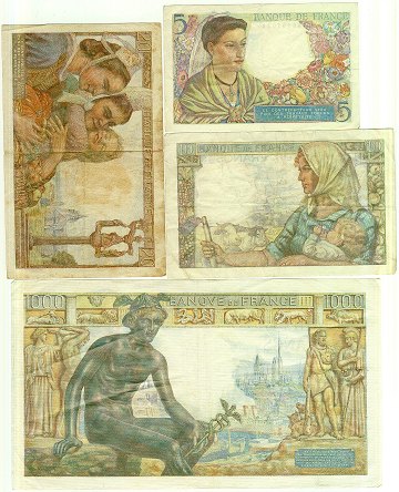 Frankrig, 5, 10, 20, 1000 francs (4), 1940“erne