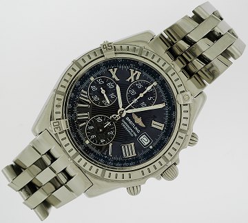 Herrearmbåndsur fra Breitling, model Crosswind, ref.nr.: A13355, i kasse og m. lænke af stål, mørkegrå skive m. arabertal, datoangivelse ved 3"position, chronometerfunktioner, jutsérbar lynette, safirglas, automatisk urværk. Ø. 42,5 mm.