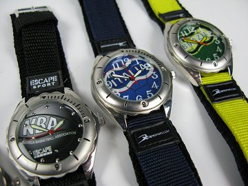 5 armbåndsure i kasser af stål med skiver for Italia - Brazil - England - NBA og anske AAB. alle med arabertal, centralt sekundviser og velcro lukke med metalspænde.
