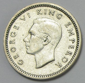 New Zealand, George VI, 3 pence SØLV 1939 - KM 7