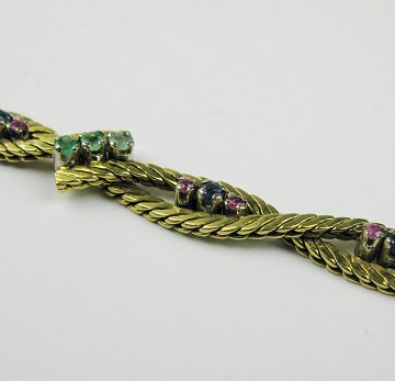 Armlænke af 14 kt. GULD med rubiner, smaragder og safirer