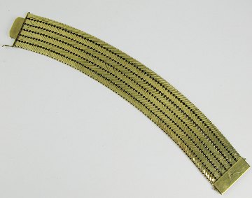 Bred og massiv armlænke af 14 kt. guld med sildebenformede led, stemplet Chr. V og 585. Fremstillet hos guldsmed Christian Veilskov Kobenhavn, efter 1963. L. ca. 19 cm. Vægt ca. 80,5 gr.