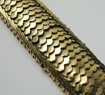 Armlænke af 18 kt. guld med led i form af fikeskæl, hvert andet led med struktureret overflade. L. 20,5 cm. Vægt ca. 73,4 gr.