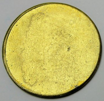Mønten er af messing, har kun præg på den ene side og er fremstillet i Spanien, 1929-1933.