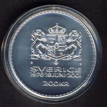 Sverige, 200 kr STERLINGSØLV 2001 - "Svensk sølvbryllup"