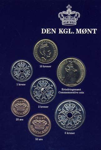 Møntsættet indeholder samtlige mønter i Danmarks møntserie præget i særlig høj kvalitet: 20-, 10-, 5-, 2-, og 1-kr samt 50- og 25-øre. Den almindelige 20 kr er ikke præget i 1997.