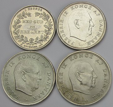 Lot danske jubilæumsmønter, bestående af: 2 kr 1888, 5 kr 1964, 10 kr 1967,-68.