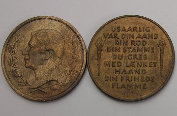 To danske støttemedailler, præget i anledning af Frankrigshjælpen 1945 og Dronning Alexandrines hjælp til de lidende for rheumatiske sygdomme.
