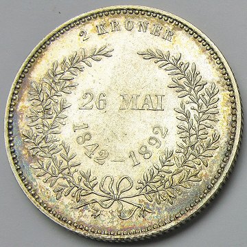 Christian IX, 2 kr SØLV 1892 - H. 11 *PÆN*
