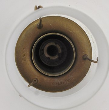 Væglampe af bruneret messing, konisk fatningshus, monteret med 2/1 skærmsæt i matglas, diam. 20 cm. Stemplet "ph-1" samt "patented".