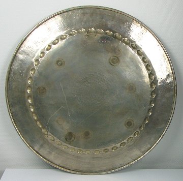 Dekorationsfad af metal m. primitivt mønster. Ø. 60 cm.