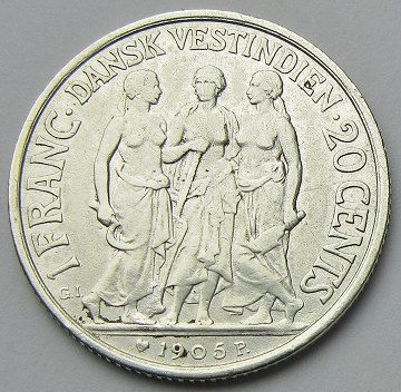 Dansk Vestindien, Christian IX, 20 cent 1905 - H. 32