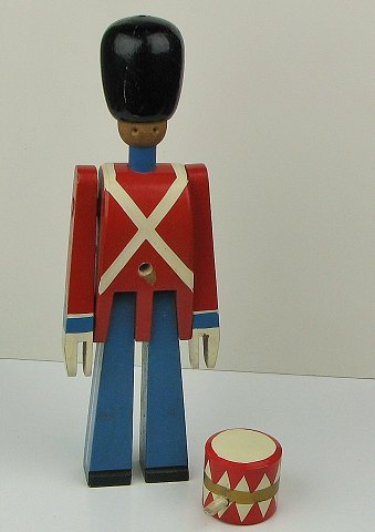 Bemalet træfigur fra Kay Bojesen, udført som garder. En tidlig model, der fremstår ustemplet. H. 23 cm.