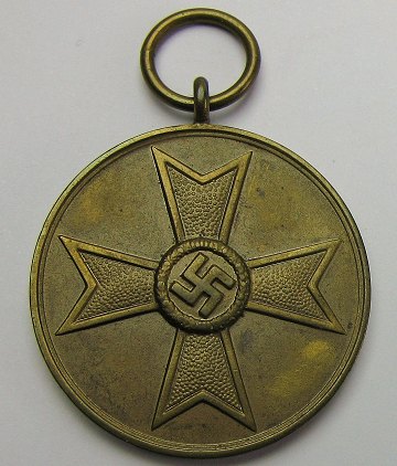 Tysk fortjenstmedaille af bronze, indført 1940 og givet til udlændinge og civile, der havde gjort en indsats for den tyske krigsførelse. På fs. står der: "FÜR KRIGSVERDIENST 1939" og på bs. ses jernkorset m. svastikaet imidten. Ø. 32 mm.