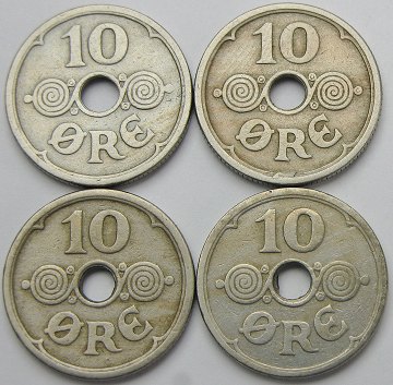 Christian X, 10 ører 1924,-25,-26,-29 - H. 26A, 26B