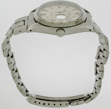 Vintage herrearmbåndsur fra Rolex, model Oysterdate Precision, ref.nr.: 6694, i kasse og m. tidlig oysterlænke af stål, lys skive m. stregindeks, datoangivelse ved 3" position, manuelt optræk. Fra 1971. Ø. 34 mm.