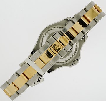 Damearmbåndur fra Rolex, model Yacht-Master, ref.nr.: 169623, i kasse og m. lænke af 18 kt. guld og stål, hvid skive m. punktindeks, datoangivelse ved 3" position, justerbar lynette i guld, safirglas, automatisk urværk. Ø. 29 mm.
