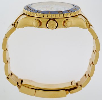 Herrearmbåndsur fra Rolex, model Yacht-Master II, ref.nr.: 116688, i kasse og m. oysterlænke af 18 kt. guld, m. hvid skive m. punktindeks, separat sekundviser, blå keramisk lynette m. arabertal, chronometerfunktion, regatta chronograf, safirglas, automatisk urværk. Ø. 44 mm.