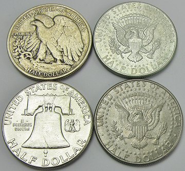 USA, halfdollars SØLV 1943,-63,-64,-96 - KM 142, 199, 202, A202c