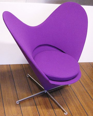 Verner Panton hvilestol model Heart Cone, udstillingsmodel fra 2010, fremstillet hos Vitra, betrukket med syrenfarvet stof. Sædehøjde 38 cm., ryg H. 89 cm.