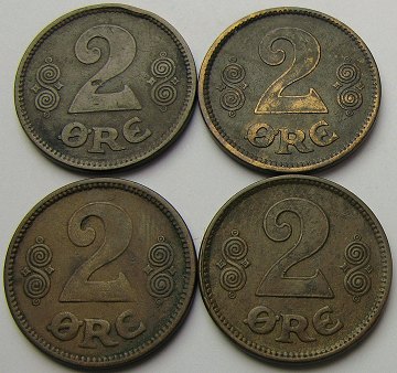Christian X, 2 øre 1919,-20,-21,-23 - H. 16B
