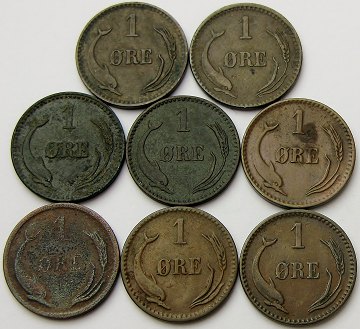 Christian IX, 1 øre 1874,-75,-82,-83,-87,-88,-89,-91 - H. 19A