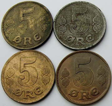 Christian X, 5 øre 1919(jern),-19,-20,-21 - H. 14B, 15B