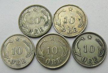 Christian IX, 10 øre 1894,-97,-99 og 1903,-05 - H. 16B