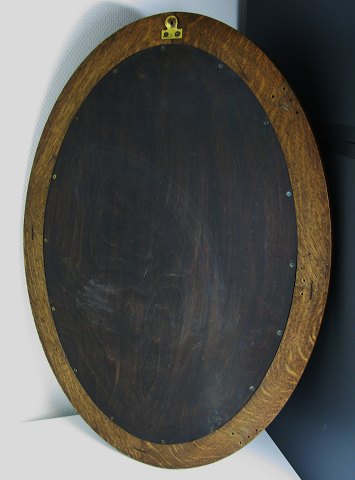 Ovalt skønvirkespejl, med tidstypiske skæringer fra tiden omkring år 1900, monteret med det originale, facetslebne spejlglas. 52 x 72 cm.