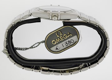 Herrearmbåndsur fra Omega, model Constellation, ref.nr.: 15124000, i kasse og m. lænke af stål, grå skive m. stregindeks, datoangivelse ved 3" position, glat lynette m. romertal, safirglas, quartz urværk. Ø. 33,5 mm.