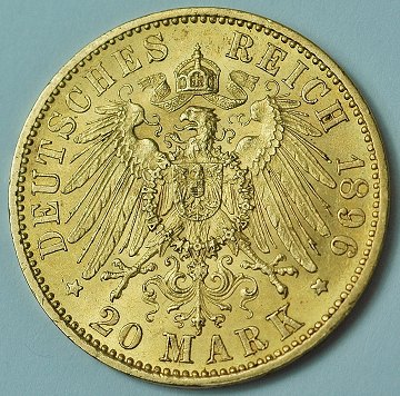 Tyskland, Preussen, 20 mark GULD 1896A - KM 521