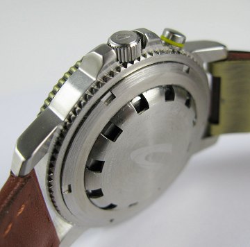 Urkasse Diam. ca. 42 mm. Læderrem med metalspænde.