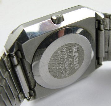 RADO damarmbåndsur í rektangulær kasse af stål med guldfarvet skive, omkranset af talrige små look alike brillanter (sten). Ingen stregindikationer, central sekundviser, datovisning i #3 positionen. Lænke af stål med flip-lock spænde. Urkasse ca. 30 x 34 cm.