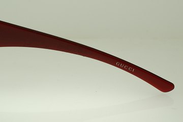 Damesolbriller fra Gucci af bordeauxfarvet plast og metal m. små simili-diamanter.
