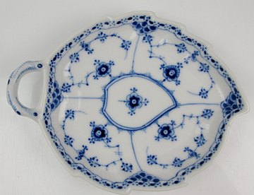 Royal Copenhagen, halvblonde musselmalet og bladformet asiet, dess. 547. L. med hank 18,5 cm. 1. sortering.