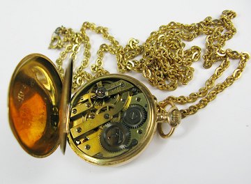 Schweizisk damelommeur af 14 kt. GULD m. doublékæde